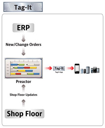 Instant notification when selected orders or clients are impacted by changes in the schedule. Tag-It! allows users to follow select jobs by receiving warning e-mail or text messages if they are projected to be delayed.
